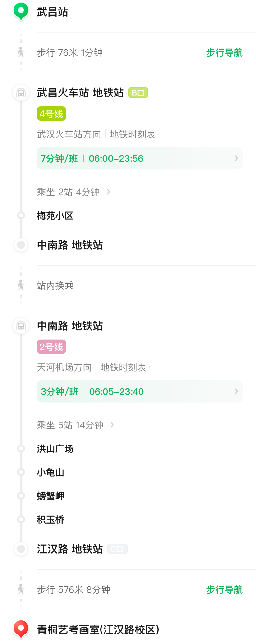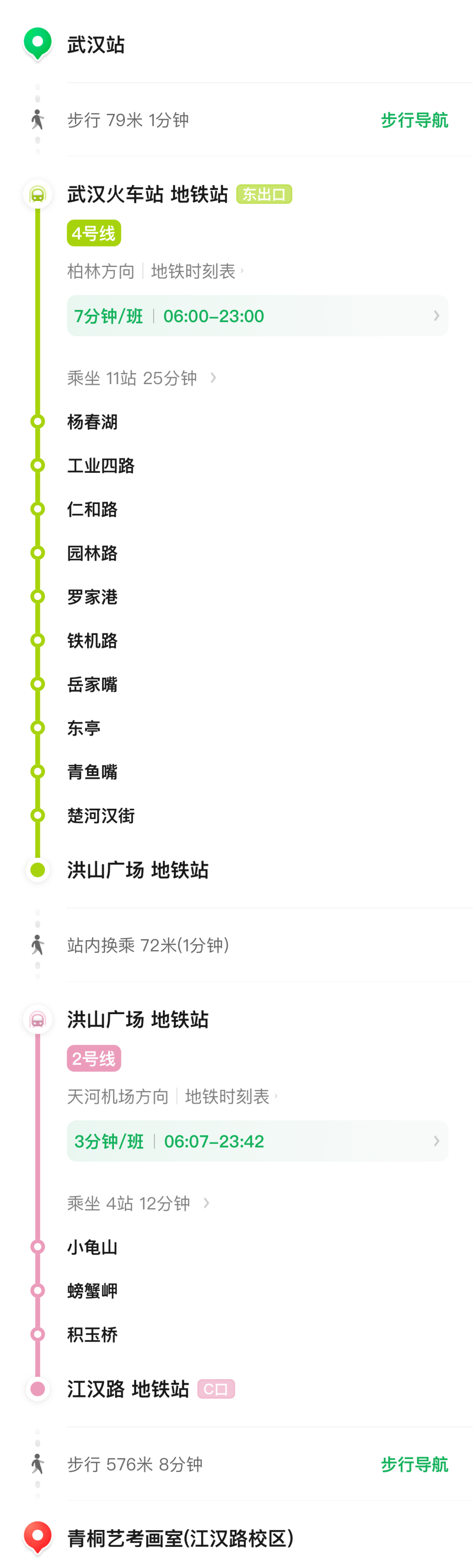 ①路线一:高铁到【武汉火车站】,换乘4号线地铁(